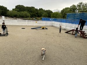 ワンちゃん用の遊具もいくつかあります。わんこのあずきは解き放たれるととてもうれしそうでした。