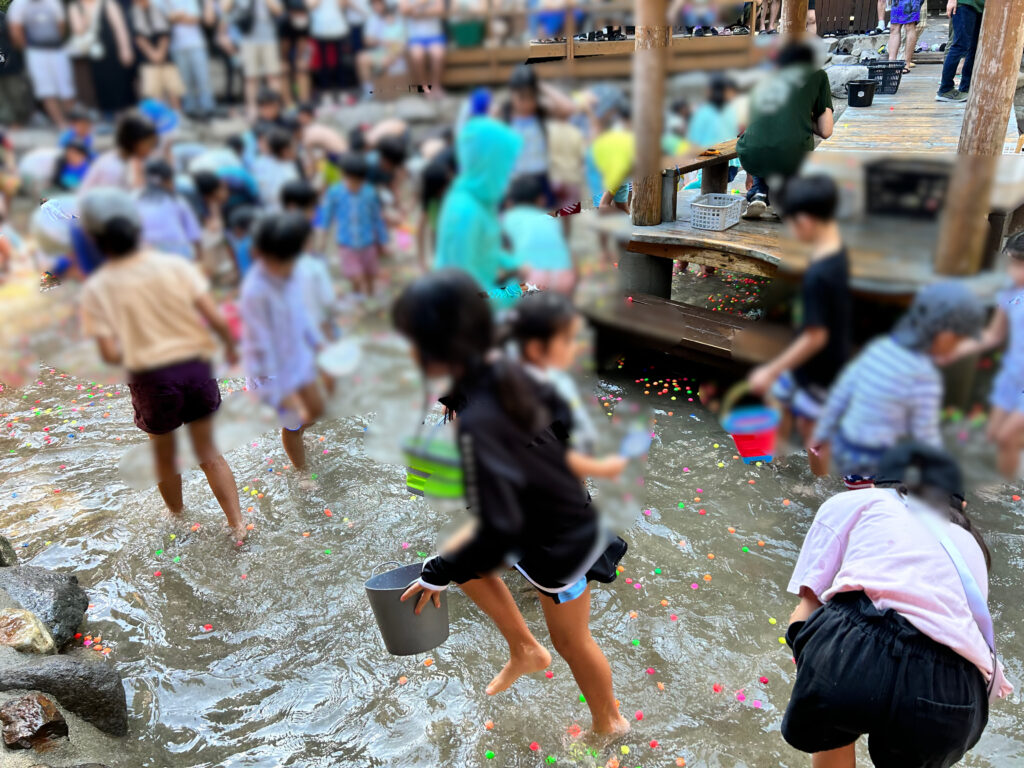 そしてここで開催される超スーパーボールすくいイベント。じゃぶじゃぶ池に約3万個のスーパーボールが放たれます。中に3個だけあたりがあり、あたりを見つけると景品もあります。子ども限定のイベントですが、夏の期間に参加無料、予約不要で参加できるので行った際にはぜひ参加してみてください。